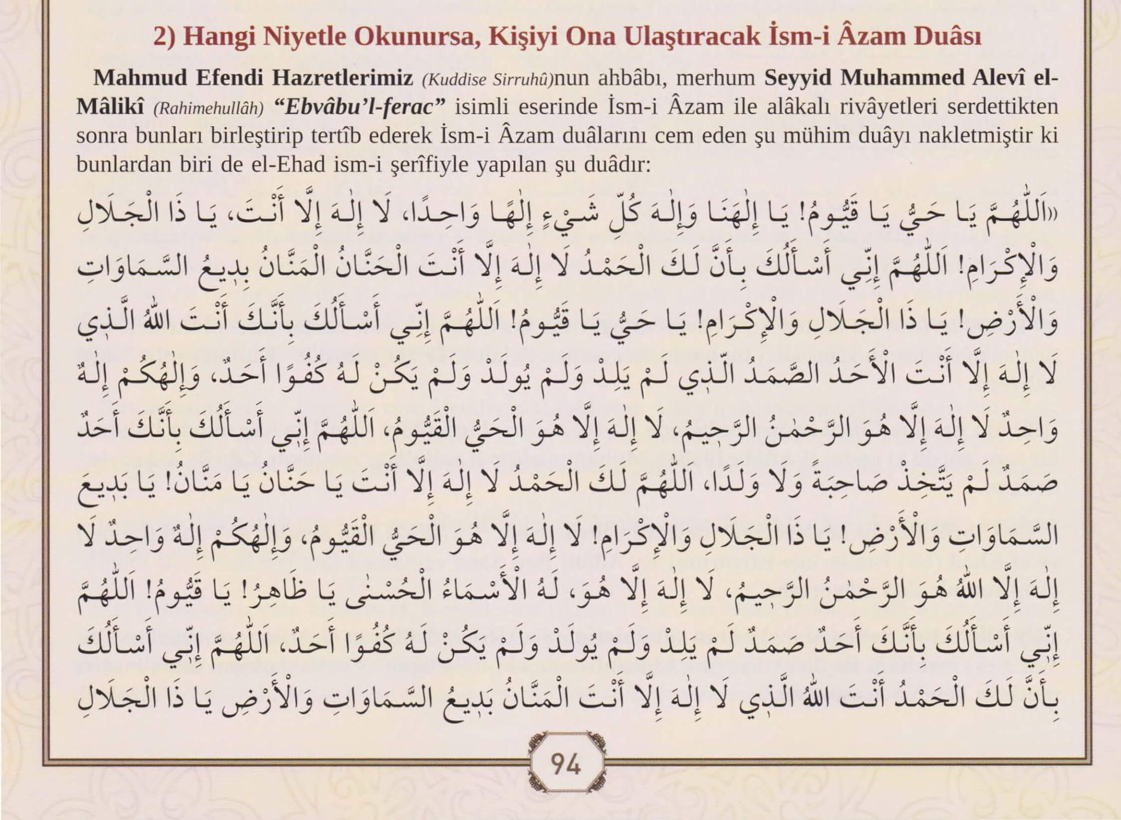 İsmi Azam'la İlgili Rivayetlerin Toplandığı Dua31 Ocak 2026Kesin Kabul DualarPaylaşPlayLalegül Dergisi Mart 2017, Sayfa 94 Lalegül Dergisi Mart 2017, Sayfa 95