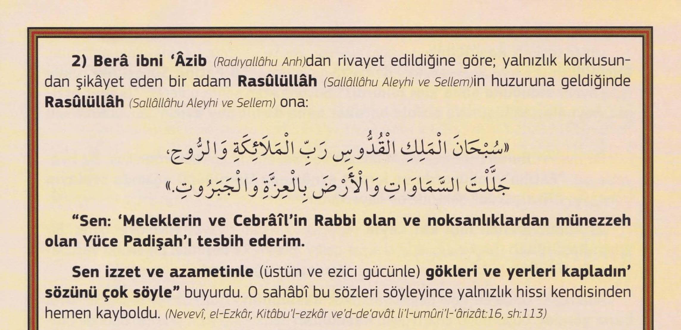 Subhânel-melikil-quddûsi rabbil-melâiketi ver-rûh. Celleltessemâvâti vel-erda bil-izzeti vel-ceberût.